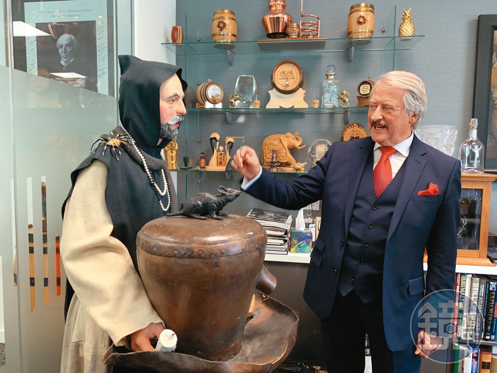 大摩首席調酒師理查.派特森(右)的辦公室裡面,有一座等人高度的約翰.柯爾人偶,大師工作之餘還常會跟它進行對話。發布時間:2023.01.10 05:28 臺北時間