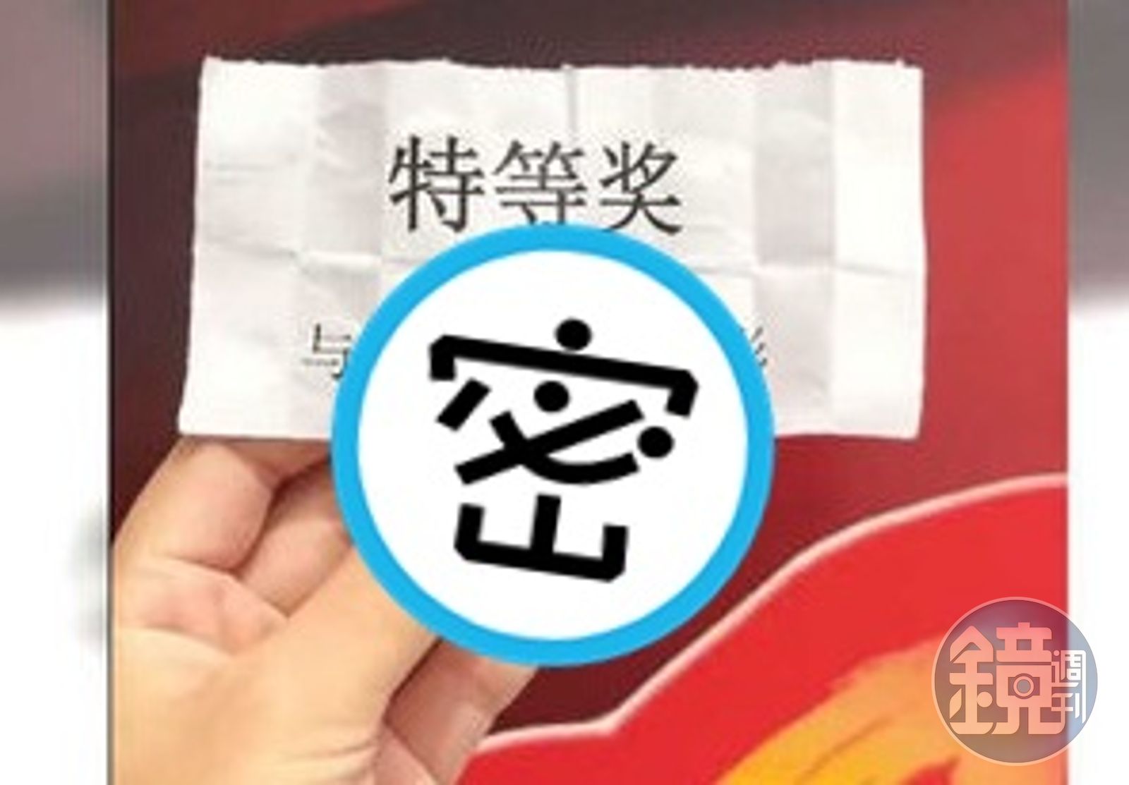 一名中國女網友近日在微博曬出抽中尾牙「特等獎」影片,只見女子把手中紙條攤開上面寫「特等獎與總經理單獨合影」,讓女子當場爆粗口「年會抽獎抽到了髒東西」,更抱怨同事們還落井下石,紛紛大讚她運氣真好。該崩潰尾牙影片曝光後,即便僅有短短4秒,但仍隨即在網路上爆紅,並掀起高度討論。
