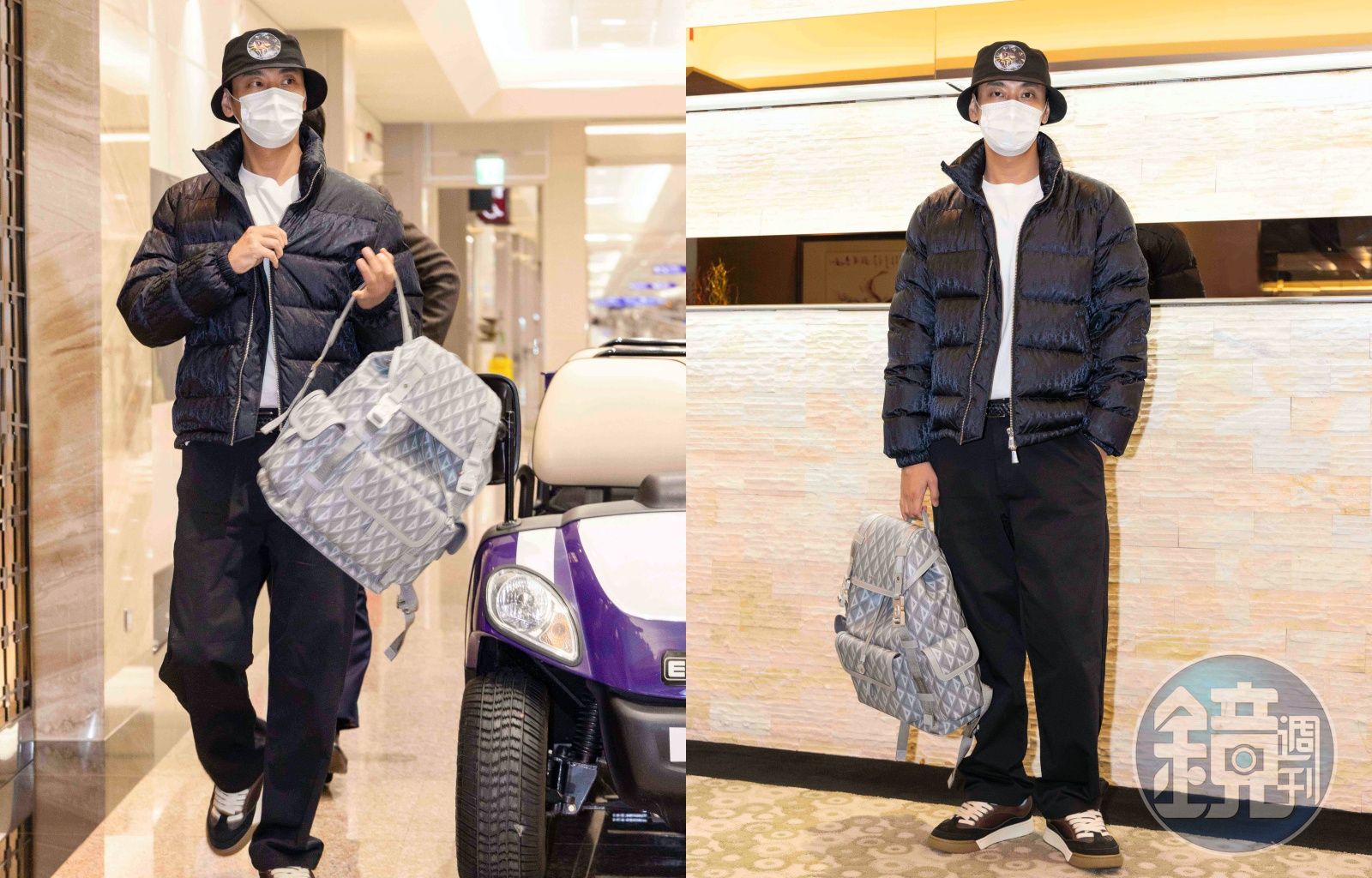 為慶祝DIOR台北101旗艦店開幕,品牌請來朱智勛出席盛會,今日下午出現在桃園國際機場的他,提早兩天抵台,他身穿DIOR Essential黑色緹花DIOR Oblique羽絨外套,搭配淡棕色磨砂革米色內裏休閒鞋、肩背DIOR Hit The Road灰色CD Diamond印花帆布背包,完全是輕鬆的搭機裝扮。