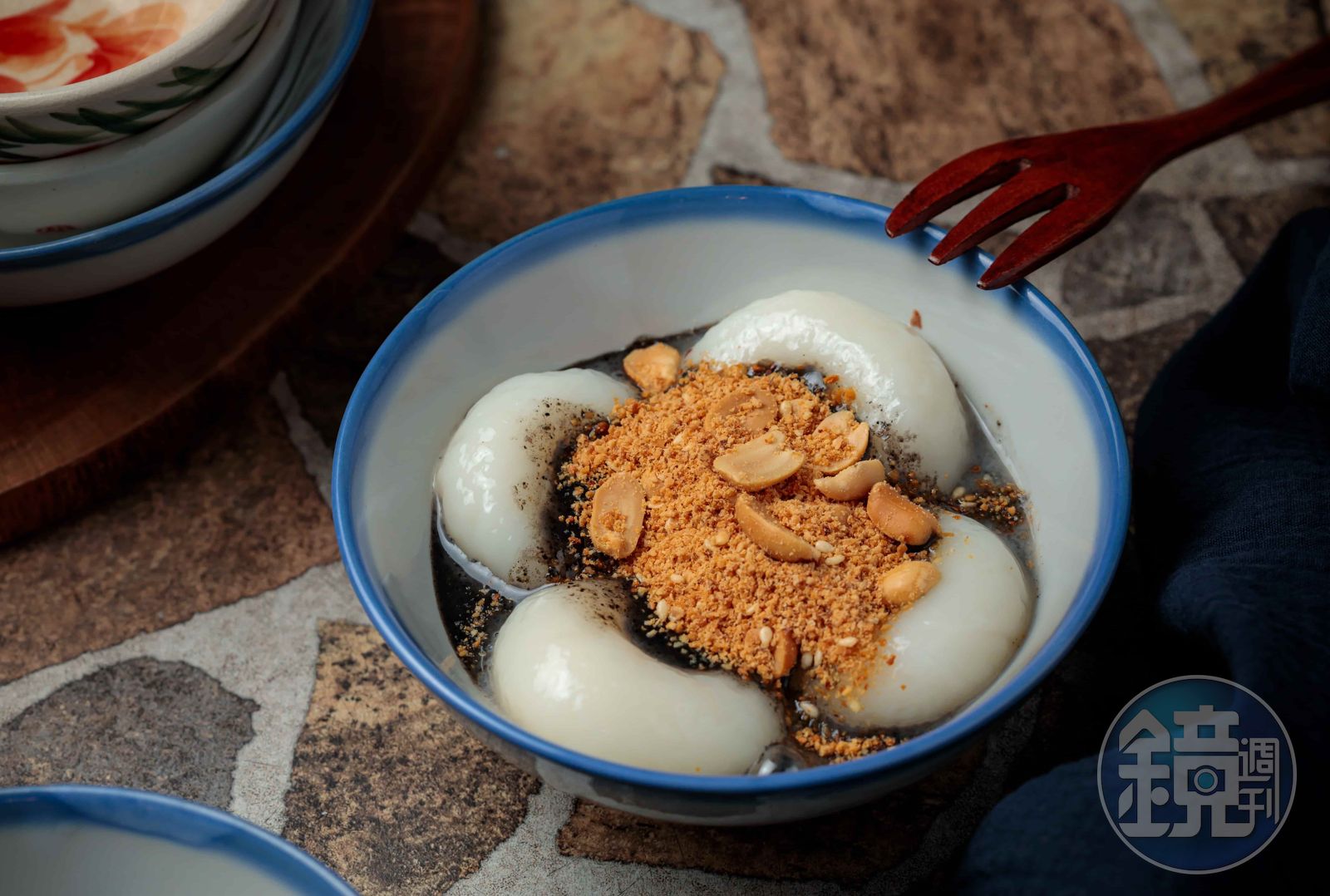加入銀耳熬煮的「麻糬銀耳紅豆湯」更加輕盈,湯汁入喉也不沙不哽喉。(60元/碗) 「薑汁黑糖燒麻糬」的黑糖薑汁被麻糬中間的凹槽吸入,整體的香氣相互結合更完整。(50元/碗)最傳統的薑汁黑糖口味燒麻糬,是我和老闆英雄所見略同的老派偏愛。選用寶山黑糖及2年以上的老薑熬出辛暖,再撒入大把花生細粉、碎粒與顆粒,嚼勁更甚湯圓,多了香氣也增加了口感。考慮到那些對薑望之卻步的客人,菜單上也有「牛奶花生」和「芝麻花生」等口味,讓他們也能開心一嘗。