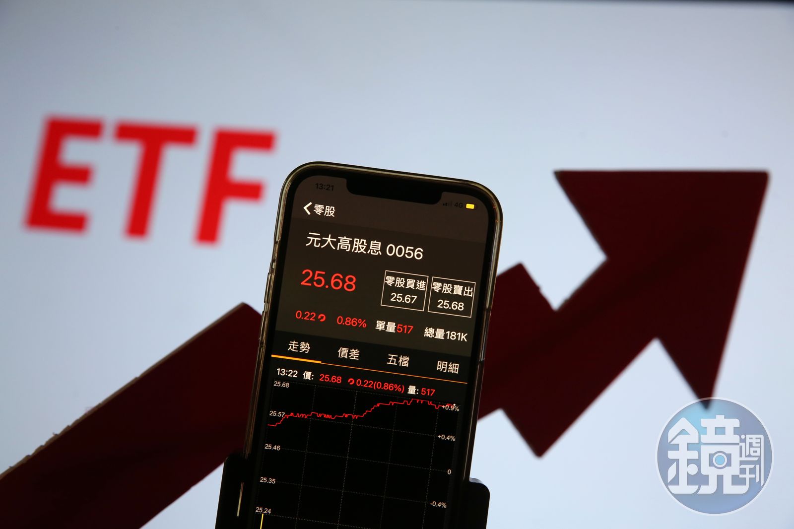 據本刊與線上市調公司波仕特合作調查,發現民眾買進持有ETF最主要目的,在「賺配息創造被動收入」,比例達38.2%;且持有高股息型ETF的投資人占比最高,達近6成;調查問及:「若要推薦一檔ETF給投資新手,您會選擇哪一檔」時,推薦0056(元大高股息)占比也最高、達24.2%。
