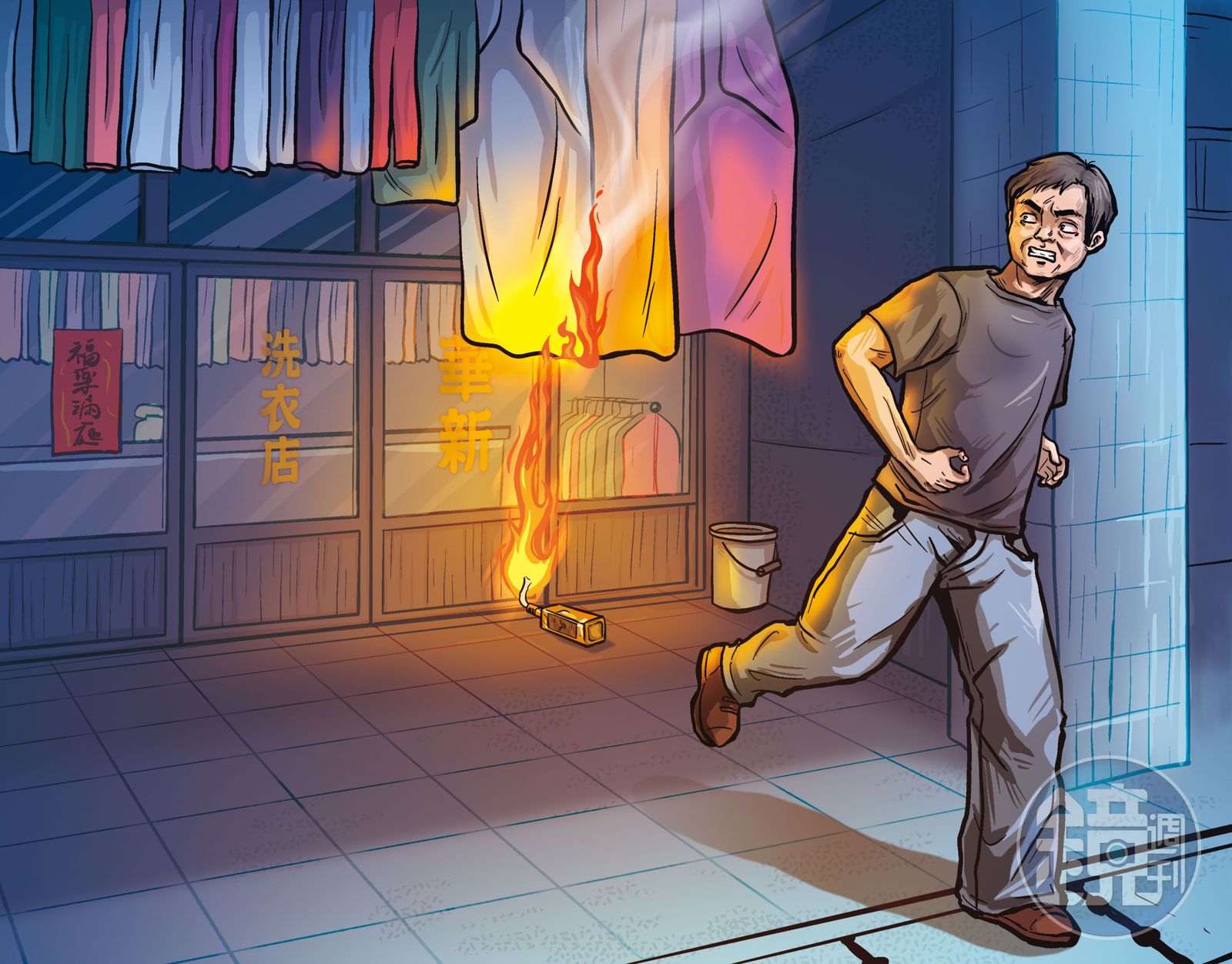2007年6月5日清晨5點多,高雄左營一名早餐店老闆娘正準備開門做生意,突然聽到「碰」一聲,接著看到附近的洗衣店冒出火勢,還目擊一名男子小跑步離開現場。老闆娘雖然大喊:「夭壽!放火!」但男子並未回頭,一路逃逸,最後消失在街頭。