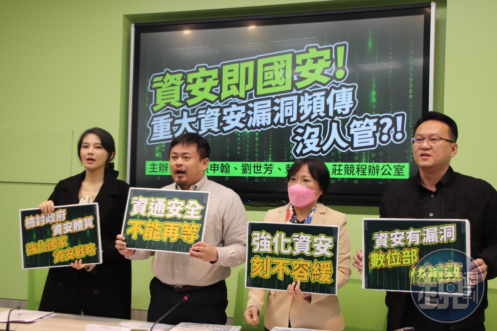 綠委洪申翰、賴品妤等人今共同召開記者會,指這幾年台灣的資安事件,不只是個案、一件而已,而是一再發生,這是很嚴重的警示,「我們今天很痛心地呼籲,政府必須要重視這個問題。」