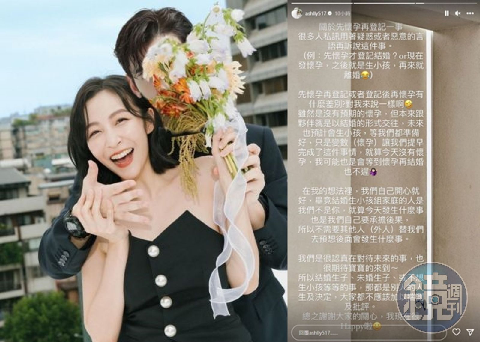 對此林雨葶寫下長文,強調她跟老公「很認真在對待未來的事,也很期待寶寶的來到。」不僅如此,她說「在我的想法裡,我們(跟老公)自己開心就好,畢竟結婚生小孩組家庭的人是我們不是你,就算今天發生什麼事也是我們自己要承擔後果」。