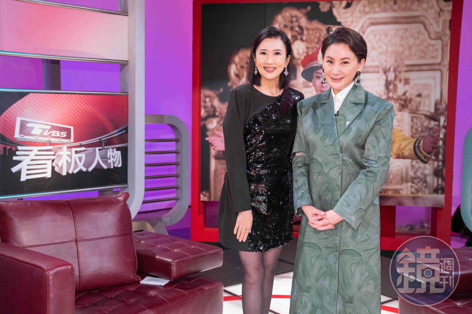 陳亞蘭(右)錄影自曝恩師楊麗花一句話的影響力。(TVBS提供)發布時間:2023.01.18 14:47 臺北時間