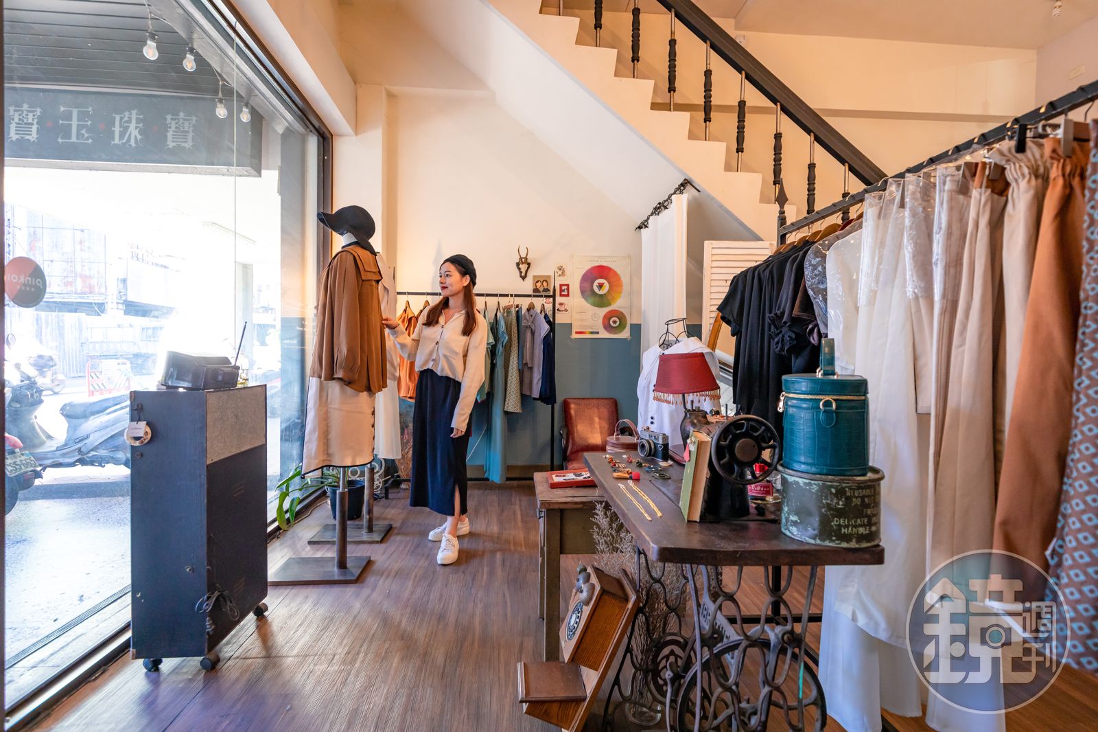 服飾皆由主理人親自設計、打版、挑選面料。店內服飾剪裁用色偏向復古風格,簡約大氣。店內看見喜歡的都能上身試穿。莎拉主張每件手工衣都堆疊著製作者的心意,上了貨架,等待讀懂它的人,在莎拉眼裡是最浪漫的事。然而在我眼中,講求快速與利潤的時代,逆洪流而上,靠熱忱堅持慢工細活的莎拉,才是最勇敢的浪漫主義者。
