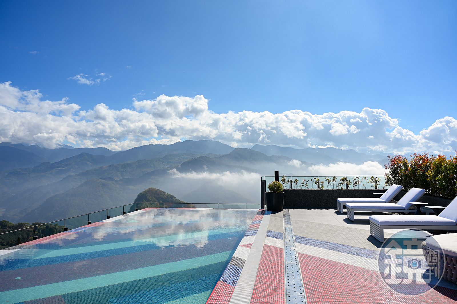 新開幕的「阿里山英迪格酒店」客房以阿里山得天獨厚的壯闊自然生態為設計謬思,融合鄒族文化與台灣藍鵲元素,也是全台首間設有泳池的英迪格酒店,也是阿里山地區唯一擁有「高空無邊際泳池」與「高空露天酒吧」的飯店,官方也宣告1月16日起,頂樓設施包含健身房、'aveoveoyu酒吧、觀星平台、溫水水療池與恆溫無邊際泳池全面正式啟用。