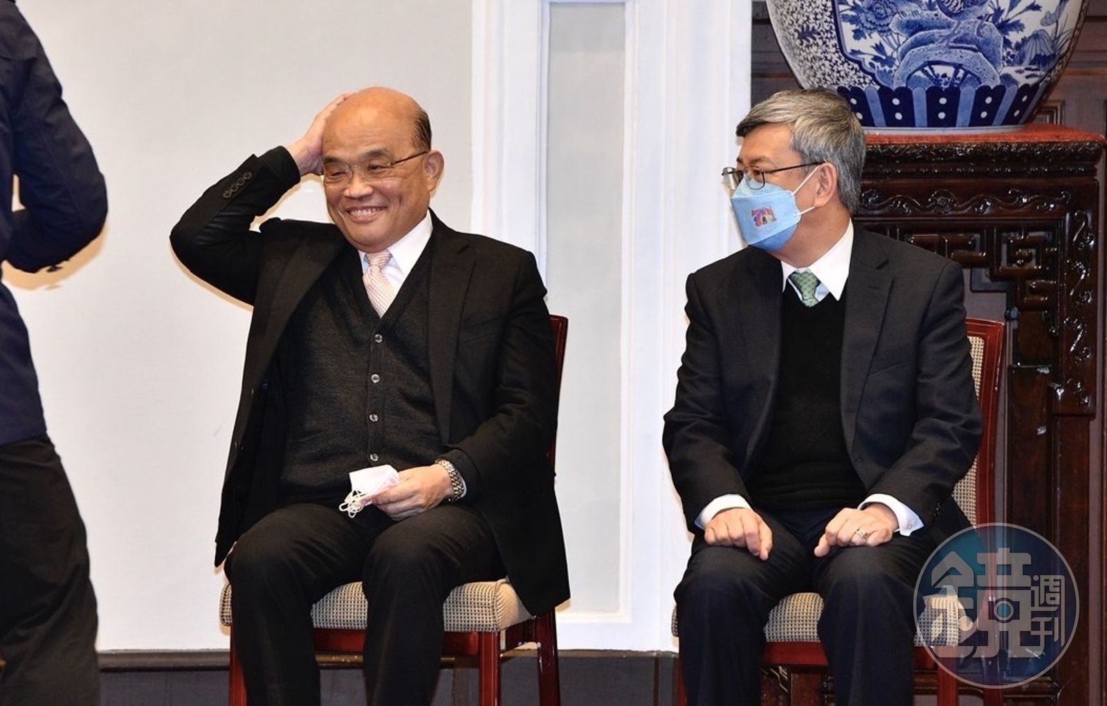 蘇貞昌說,是有做出一些成績,這點行政院長和總統之間最知道彼此的辛苦,不過限於自己的能力,有一些確實做得還不夠好,還有很多應該再改進、可以再加強的地方。他說:「今天蔡總統要任命陳前副總統擔任行政院長,以陳前副總統暖男、樂於貢獻的特質,以及他豐富的學經歷、對各方面事務的熟稔和對蔡總統的了解和配合,在國人期望下,相信帶著行政團隊,必能展開一番新局,必能做出更好更大的貢獻」。