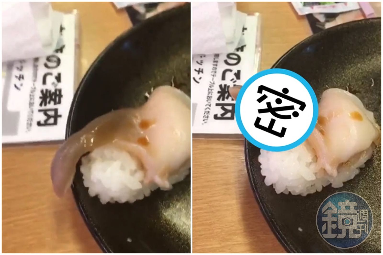日本一名網友在推特上分享一段影片,大呼「在迴轉壽司遇上了悲劇」,才知道該網友到迴轉壽司店用餐時,正準備享用的貝類壽司觸角竟還在抽動,且事後用筷子戳還蠕動的更大,甚至一度大力抖動後,幾乎整片翹起來,且一直維持著這個姿勢。