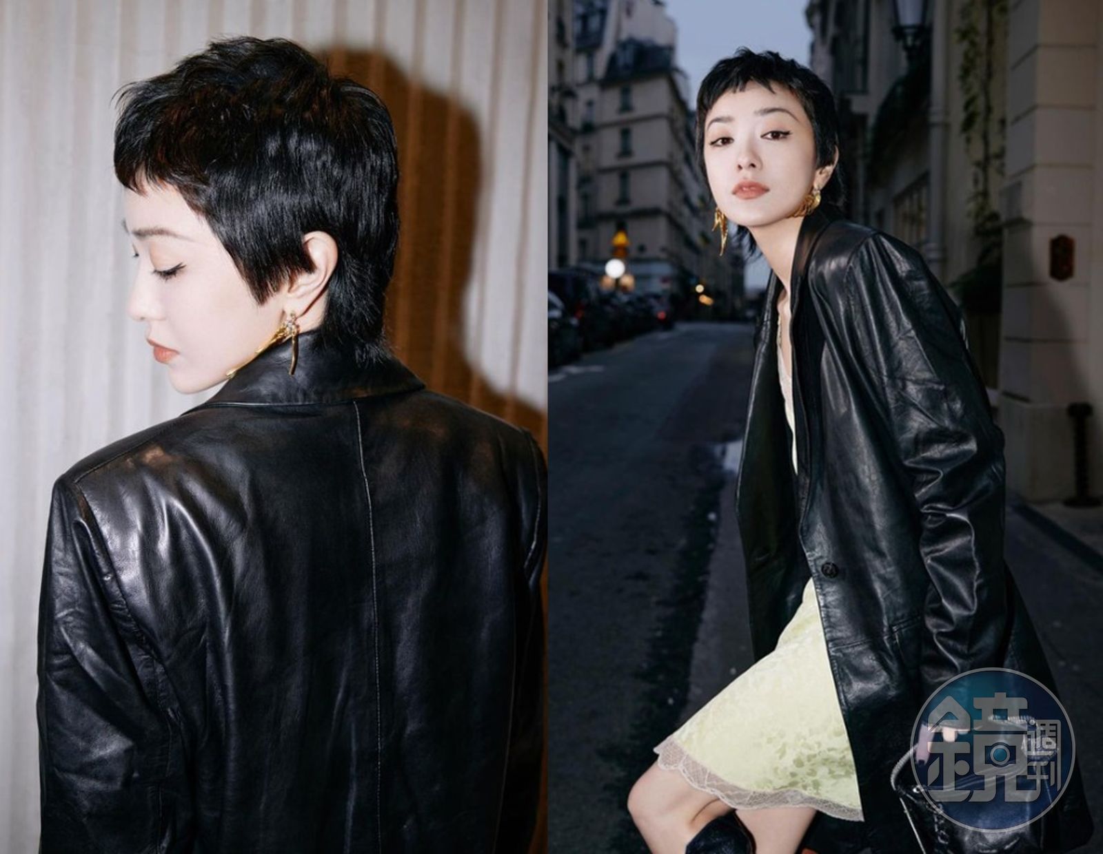 郭采潔日前在IG曬出一系列照片,她頂著一頭俐落短髮,細長的眉毛、上勾的眼線、淡色系的眼影點綴,搭配奶茶色的唇膏。郭采潔身穿黑色皮衣,內搭一件蕾絲洋裝,腳踩黑色長靴,整個人看起來頗有氣場。