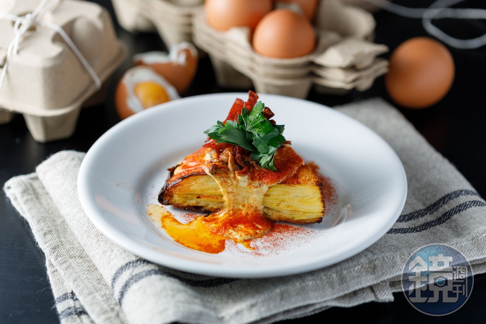 Neighbour駐店團隊「L'épicerie Croix 」由負責料理的喬治(右)與主掌酒水的麥可(左)組合而成。「烤蔬菜」搭配使用LOUU「油漬煙燻堅果甜椒」與「油封香料番茄」做的西班牙紅椒醬。(300元/份)「馬鈴薯蛋餅」(Tortilla)使用LOUU「油漬牛肝菌綜合菇」與大蒜蛋黃醬。(300元/份)「米型麵」(Piñones)加入西班牙香腸及LOUU「油漬山椒桂竹筍」,鹹香帶勁。(350元/份)「燉牛舌」搭配以LOUU黑蒜奶油做出深邃香辣的醬汁。(650元/份)如游牧民族、由主廚喬治及調酒師麥可組成的「L'épicerie Croix」雙人組每週有3天駐紮在Neighbour,運用LOUU的罐頭與風味奶油,提供爽快、直接又美味的料理。如以黑蒜奶油醬汁燉煮到軟嫩入味的牛舌,以山椒桂竹筍、白酒翻炒收汁的米麵,以油漬牛肝菌綜合菇與大蒜蛋黃醬做成層次豐富的西班牙蛋餅。道道直拳,都是充分滿足人口腹的療癒食物。