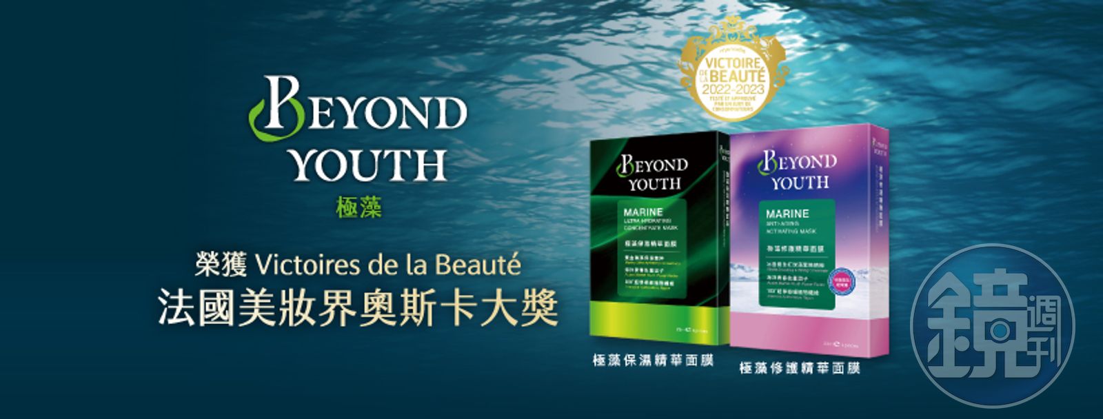 BEYOND YOUTH 創立僅僅半年,首度報名參賽,便一路過關斬將奪下大獎,一登場就獲得台灣消費者喜愛及全球注目,登上巔峰之路! BEYOND YOUTH不僅時刻關注消費者不同肌膚需求,積極投入研發,傾注海洋能量,打造兩款對抗老化威脅及乾燥粗糙的夢幻逸品-極藻保濕精華面膜及極藻修護精華面膜,只為了幫助肌膚即早鎖住肌齡!