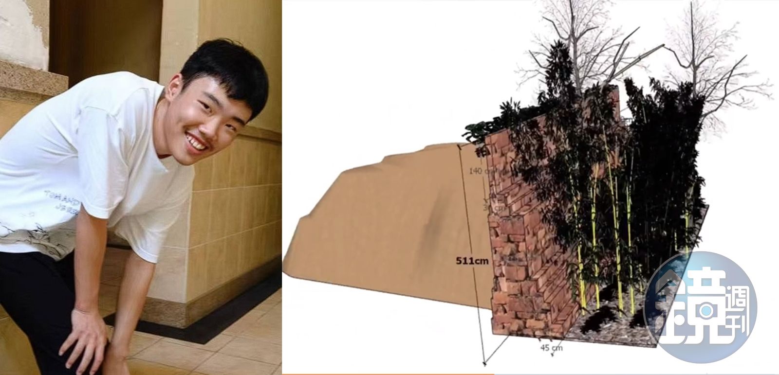 而發現胡鑫宇的中心現場位於糧庫院內北部窪地竹樹雜林中,窪地高低落差達6.3公尺,北邊還有東西走向的圍牆,牆外緊鄰一座土推,土堆與圍牆間有2棵樹木。