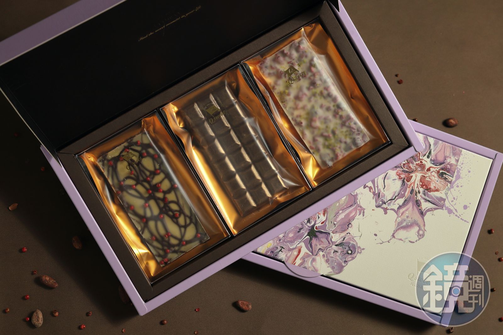 吃一口就像在舌尖交織出三重奏樂曲,低音是黑巧克力,中音來自白巧克力與百香果,粉紅胡椒揚起輕盈高音;高純度黑巧克力「80%黃金比例」由3個可可產區以黃金比例調配而成,這兩款即是去年時任美國聯邦眾議院議長裴洛西訪台時,立法院為身為巧克力控的裴洛西,精挑細選的禮物,今年通通收編進「鴻兔大展 三塊巧克力霸大禮盒」,第3款口味可從2022年ICA全球總決賽銀牌「夏日時光」或「莫內花園」中2選1,想Get裴洛西同款,推薦帶這一盒!