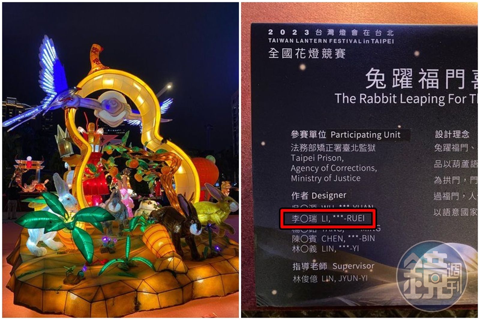 適逢元宵節,台北燈會盛大舉行,就有一名網友日前在PTT以「今年花燈競賽宗瑞哥又參戰了嗎?」標題發文,透露下班到國父紀念館逛花燈之際,想到去年看到李宗瑞的花燈作品獲獎,但前幾天好像看到新聞說李宗瑞今年不做花燈了,不過隨即就在眾多作品中,看到台北監獄花燈名單裡「熟悉的身影」。