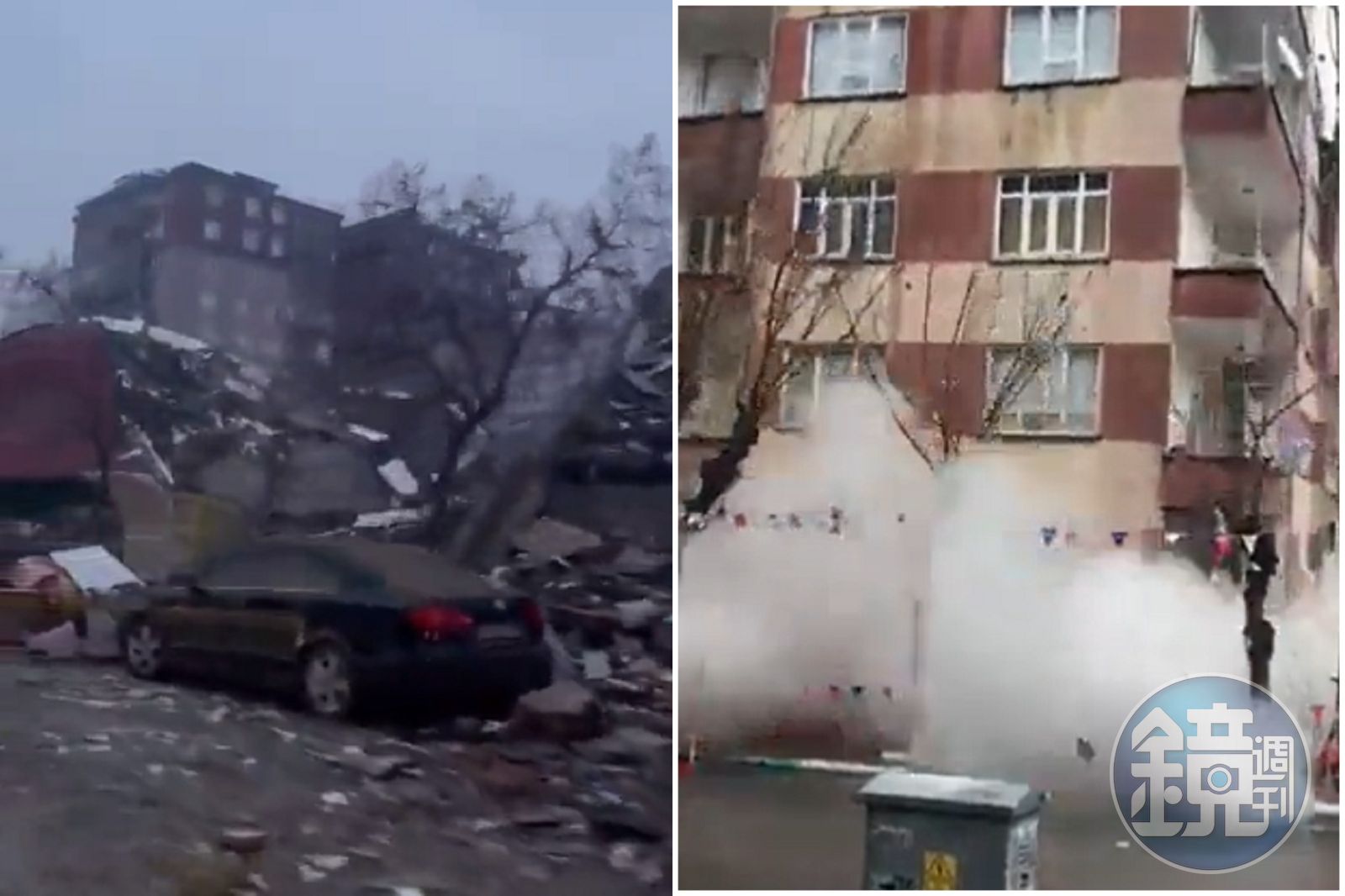 報導也指出,這場地震也重創敘利亞西北部地區,兩國的死亡人數相加,確定已經超過1000人,傷者更難以計算。另外有當地民眾上傳的影片顯示,不少建築物受到強震而傾倒,甚至有民眾近距離目擊整棟公寓瞬間倒塌的恐怖狀況。還有影片顯示,強震後許多居民受到驚嚇,甚至失去親人,淒厲的哀號聲不斷迴繞在空中。