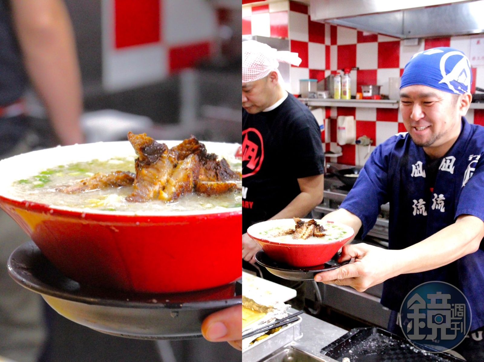 食材方面,生田主廚嚴選顆顆飽滿肥美的東石蚵仔入菜,為了能完美將蚵仔煎風味融入經典豚骨拉麵中,研發團隊耗費多時反覆測試,基底以豚骨加入大量新鮮東石蚵仔熬煮而成豚骨清湯,麵條則由日本製麵職人監修製成麵體扁薄,口感細緻的胡椒太麵,表面在舖上香氣四溢的現切豬腩肉叉燒。而蚵仔煎主體的「蛋」。生田主廚則是以玉子燒的形式呈現出創新的蚵仔燒,最後再撒上大量蔥花。上桌時建議先來口濃郁湯頭,保證立即炸裂的鮮蚵海味席捲味蕾。