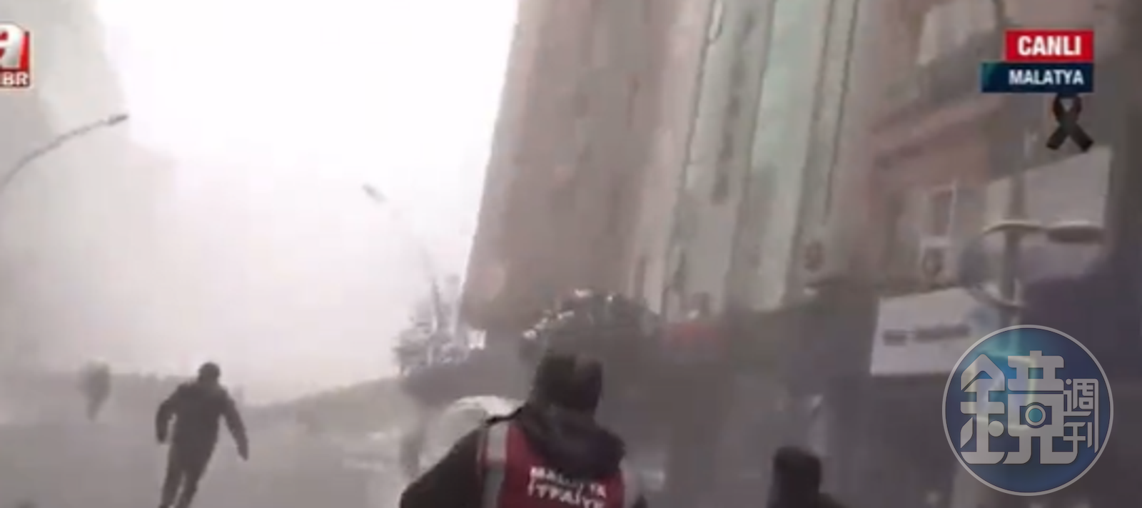 土耳其一名電視台記者在7.8強震發生後,抵達重災區馬拉蒂亞(Malatya)連線,播報當地災情。但就在連線到一半時,現場再度發生規模7.5強震,導致記者身邊的一棟公寓,硬生生全棟倒塌。鏡頭也可見,當時記者和其他居民們不斷「快逃啊」,畫面相當震撼驚悚,也讓許多網友感受到這場天災帶來的破壞威力。
