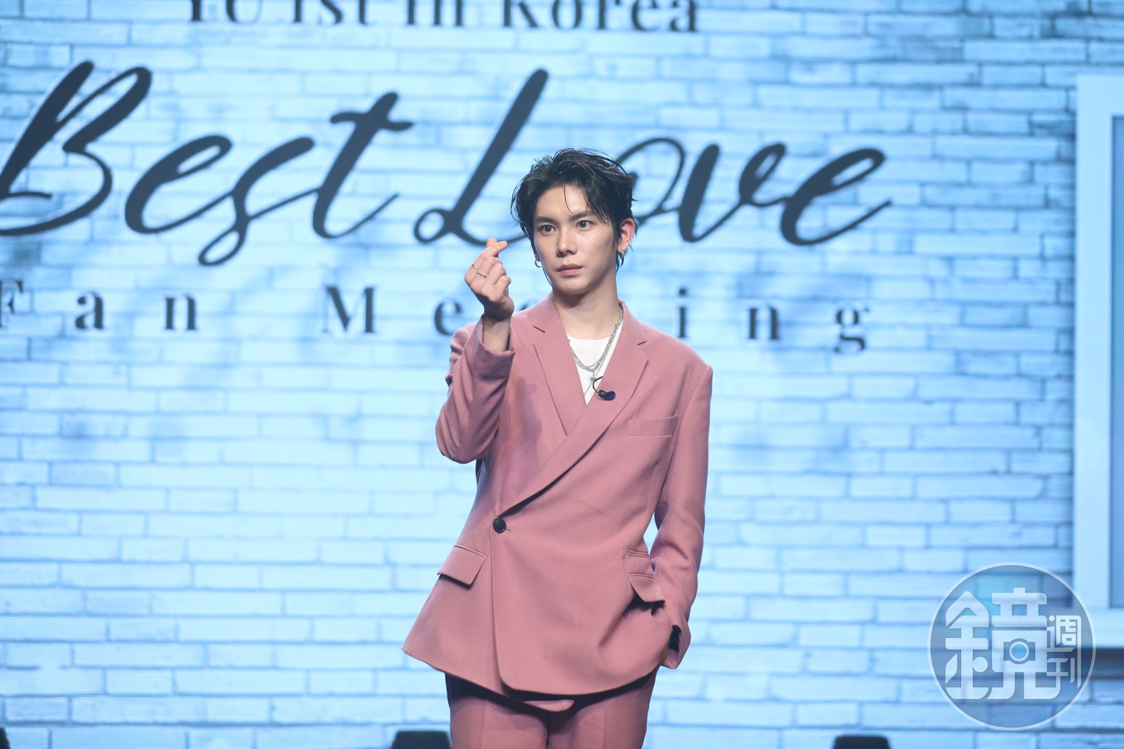 楊宇騰YU為見面會準備一黑一粉的西裝,加上韓式妝髮大變身,讓粉絲當場改口喊「歐巴」,現場演唱中文歌〈水藍色情人〉和日文歌〈心鏡〉,甚至特地帶來Paul Kim的韓文情歌〈Every Day Every Moment〉,溫柔又嘹亮的歌聲收服了現場的觀眾。