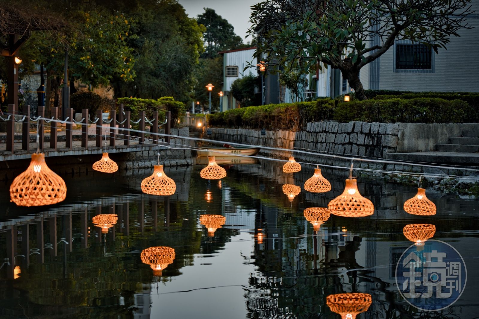 水圳入夜後,在水面上的燈光裝置映照在水圳及樹林上方。步行旅客可以 從中華街到鳳山火車站,欣賞一整條的「光之圳路」,竹編的燈充滿平實和靜謐的氣氛,當整座舊城點亮夜燈,到訪的旅客也像走在星河之上。這場燈展從即日起一直展出到228連假,整個月都可以享受不同於以往的古城風貌。