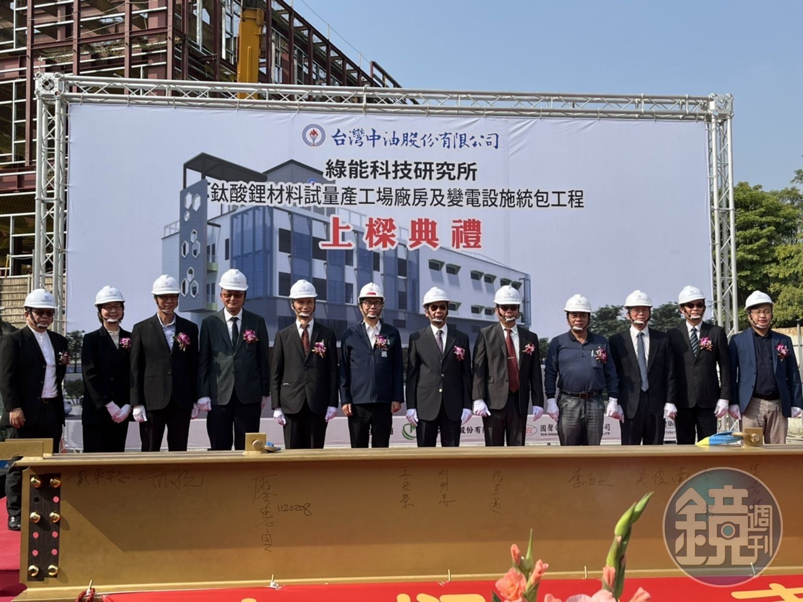 為了推動研發成果商業化,順利量產,負責研發的台灣中油綠能科技研究所於去年(2022)年3月11日開始興建試量產工場,工程進度順利,今(2023)年1月20日經濟部工程查核獲得甲等的佳績。今日舉辦上樑儀式,後續將進行外牆裝修及室內裝修等工作,相關生產設備亦將陸續進場安裝及測試,預計今年年底即可運轉。
