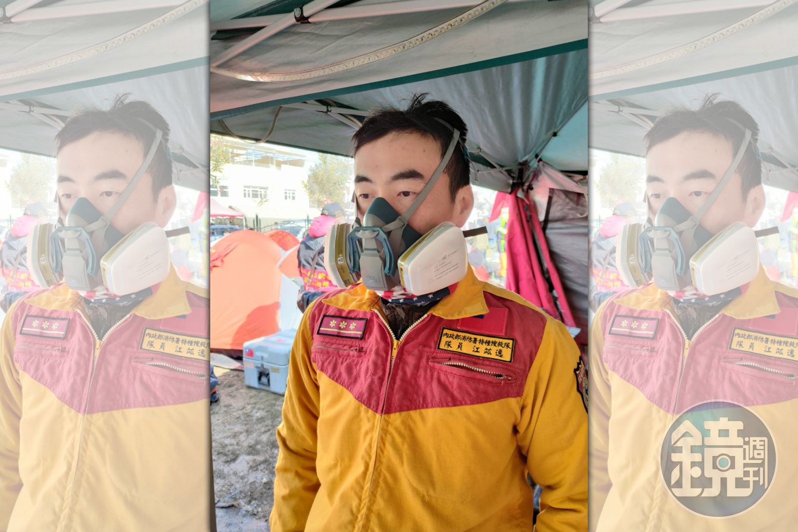 消防署表示,面對充滿粉塵及味道的搜救環境,依照相關作業程序,為確保人員安全,全程皆會配戴口罩或配有濾毒罐的面罩進行作業,返回基地休息時,亦會進行消毒作業,以確保全體人員及休息場域的衛生安全。