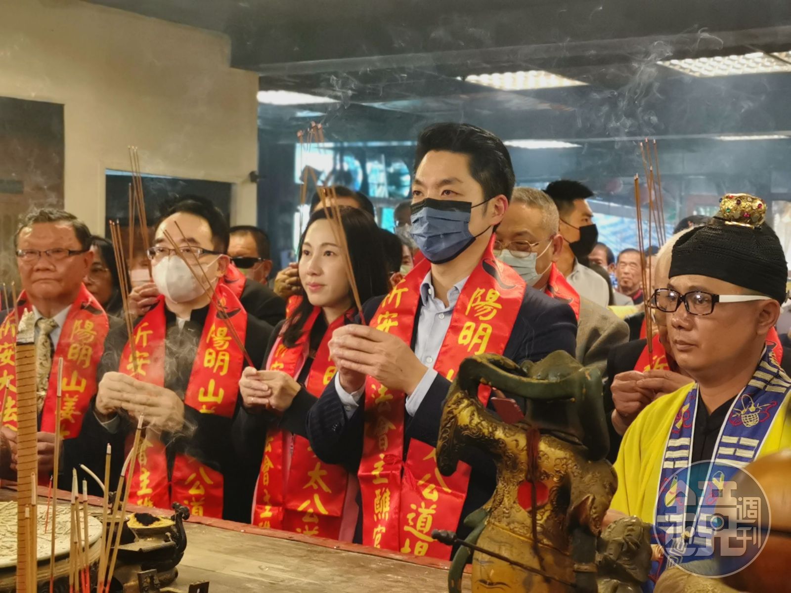 蔣萬安去年8月份曾出席於台北圓山飯店舉辦的姜太公祝壽大典,因選前行程過於繁忙,委由其競總執行幹事長謝一淅、前馬市府民政局長何鴻榮、前考試院祕書長林水吉、前行政院客委會副主委劉東隆及現任北市法制局長連堂凱等人赴姜太公道場代為點七星燈,祈求神明加持,為選情加分,道場並擺出過火七星陣為眾人趨吉避凶。