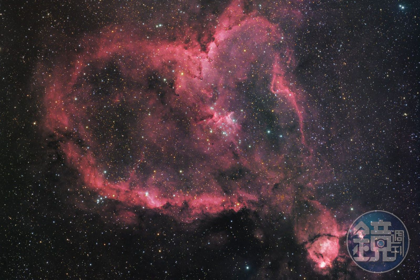 仙后座的星雲IC 1805正因其外形酷似愛心,被稱為「情人節星雲」。(台北市立天文館提供)發布時間:2023.02.13 16:04 臺北時間