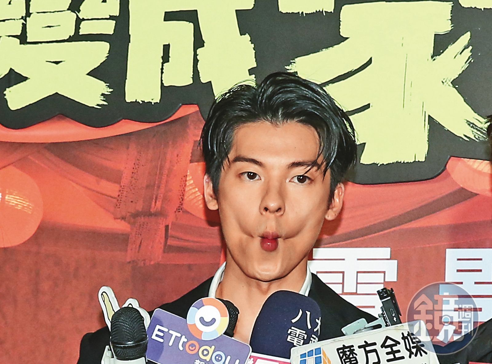 許光漢、林柏宏、王淨主演的懸疑喜劇《關於我和鬼變成家人的那件事》上映,許光漢飾演一名鋼鐵直男警察,意外與「Gay鬼Gay怪」的林柏宏冥婚。首映會上,許光漢默默嘟起櫻桃小嘴,好可愛、好想親喔!臉頰如果畫上兩球腮紅,很像靈堂紙紮的「金童玉女」呢!(還有人想親嗎?)(哈囉?)