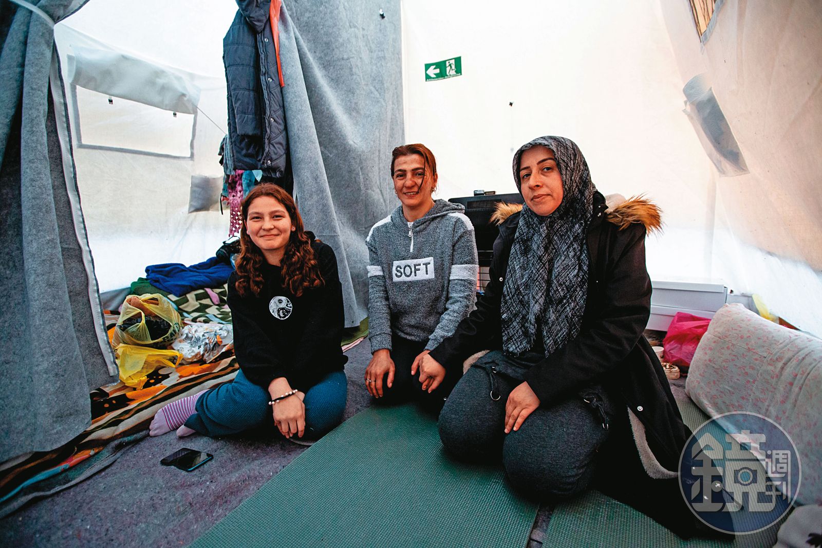 43歲的Naciye是個單親媽媽,她的房子因為地震失去了整片外牆。地震當晚,她帶著孩子們逃出來,因為大雨全身都淋濕了,「但我們不敢接近大樓(避雨),只能在路上烤火取暖。」前兩晚他們一家待在街上,瑟縮在巴士站附近,有陌生人好心把身上的外套留給他們;直到地震後第三天,他們才抵達安置區。
