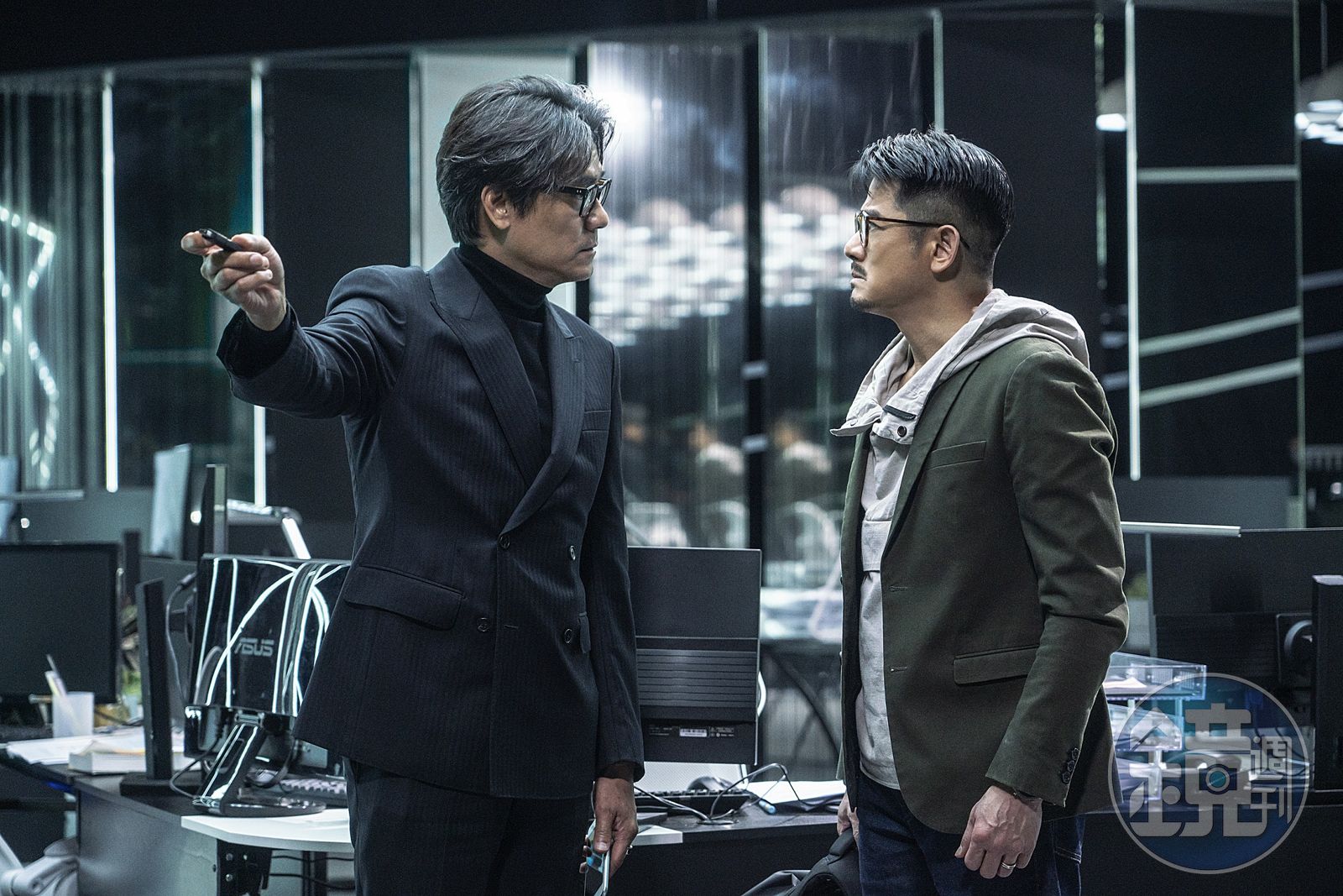《斷網》今(15日)公開正式預告,可以見到花費7500萬重金打造的特效的場面,將虛擬和實景精緻交疊,充滿高科技感。見到三大影帝在電影中關係緊繃,林家棟再展惡人演技,威脅郭富城協助進行網路犯罪,而警方任達華則是想利用郭富城找出林家棟的犯罪證據。郭富城一心想救命在旦夕的女兒,他的太太賴妍雅也成為追捕目標,一環牽制一環,郭富城說:「我從沒有拍攝過這樣的題材,感到很新鮮。」