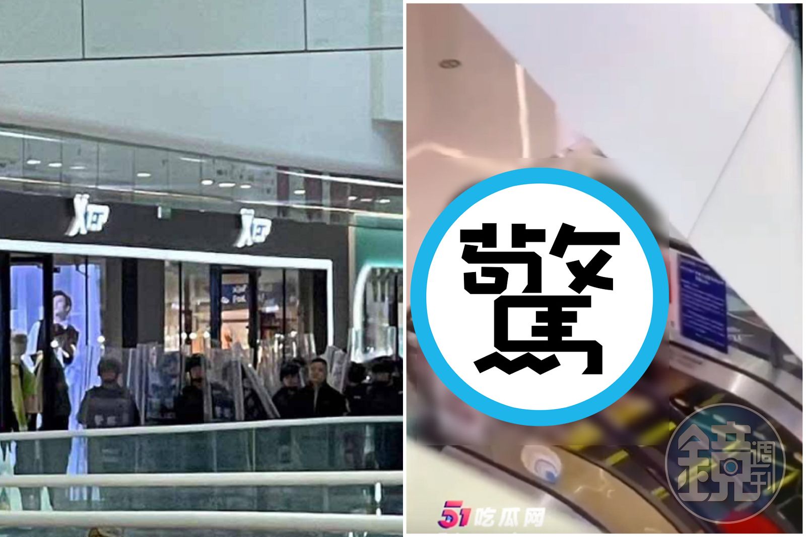 據悉男子犯案後逃離現場,其他民眾看到現場狀況,搖頭直呼「慘不忍睹」,女生躺在手扶梯口,已經沒有氣息,滿身都是血,大量血跡也濺到地板上。此外,警方獲報後趕抵現場,大批警力駐進商場內。