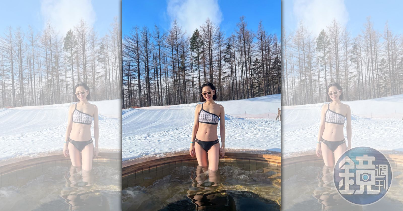 激烈運動完的露天加拿大浴,更是每日必泡,早上邊賞雪邊泡著醒神,晚上泡著恢復精神,零下十幾度C浸在熱水裡,迎著日光或星光,各有不同氣氛,徹底享受放鬆放空,楊千霈表示已經很久沒有小露腹肌,平時身材保養得宜,不像二寶媽,人到國外,身心靈都解放,連尺度都變大了。