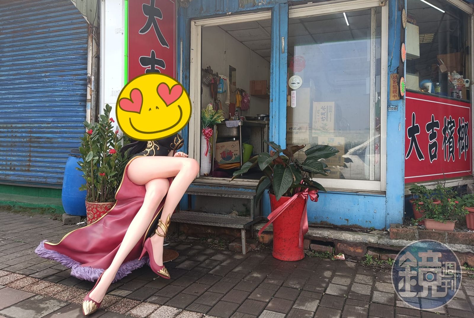 檳榔攤前一尊真人比例的女帝公仔,在臉書引起討論。(翻攝自路上觀察學院)發布時間:2023.02.20 16:52 臺北時間