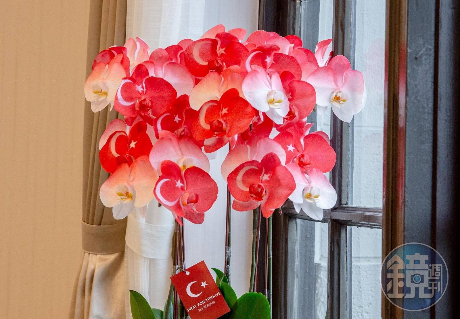 以紅白色調噴染出的土耳其國旗蘭花,非常美麗。(翻攝蔡英文臉書)發布時間:2023.02.22 12:26 臺北時間