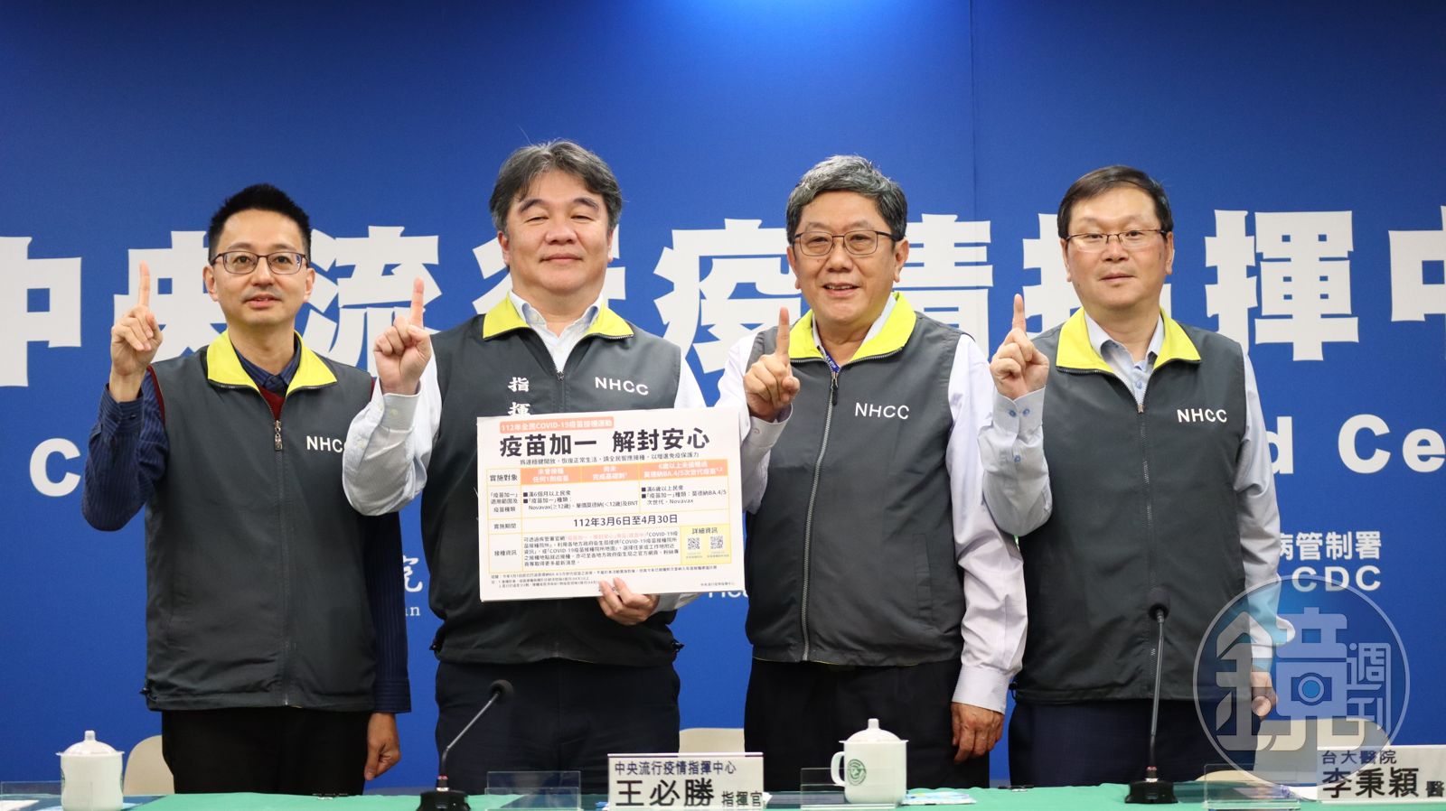 王必勝表示,為達穩健開放,恢復正常生活,自3月6日至4月30日,推動「112年全民COVID-19疫苗接種運動」,活動主軸為「疫苗加一,解封安心」,呼籲「未曾接種任何一劑」「尚未完成基礎劑」及「6歲以上於今年1月1日起未接種過莫德納BA.4/5次世代疫苗」的對象響應接種,以增進免疫保護力,做好開放準備。
