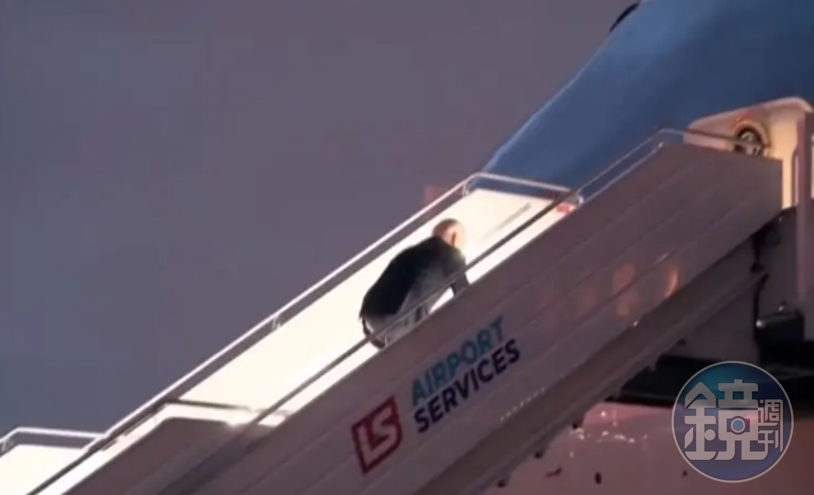 影片可見,當時拜登走階梯準備登上空軍一號,但走到一半時,鏡頭畫面卻呈現拜登「被消失」的狀態。原來是拜登走樓梯時,突然腿軟打滑,導致整個人瞬間往前撲。隨後拜登趕緊調整步伐,重新站起,並回在機艙前轉身回頭,和民眾揮手致意。