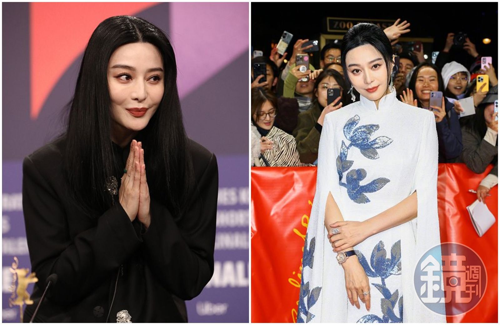 電影《綠夜》23日於第73屆柏林影展「電影大觀」單元舉行全球首映,范冰冰與導演韓帥、韓星李周映出席。范冰冰身穿一襲Christopher Bu定制白色旗袍領花葉長禮服走上紅毯,低調婉約。她為紅毯旁的粉絲簽名、拍照,有粉絲用中文大讚她「太美了」,她以飛吻和90度鞠躬頻頻向對方說謝謝。