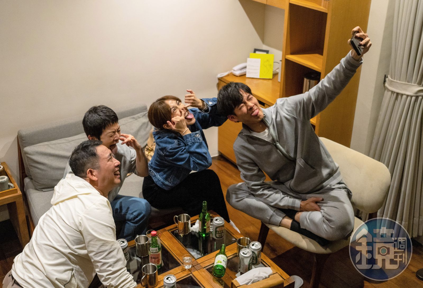 這次《花甲少年趣旅行》成員初見面的第一夜,選在這2年爆紅台劇裡的主要場景「光HIKARI」酒店,因為此趟花甲之一的成員謝瓊煖,在該劇中飾演店裡最資深的小姐「阿季」,製作單位如此貼心的安排,也讓謝瓊煖一抵達店門口時,彷彿又再次進入當時的角色,忍不住脫口:「(今天)是要來上班的嗎?」非常幽默。