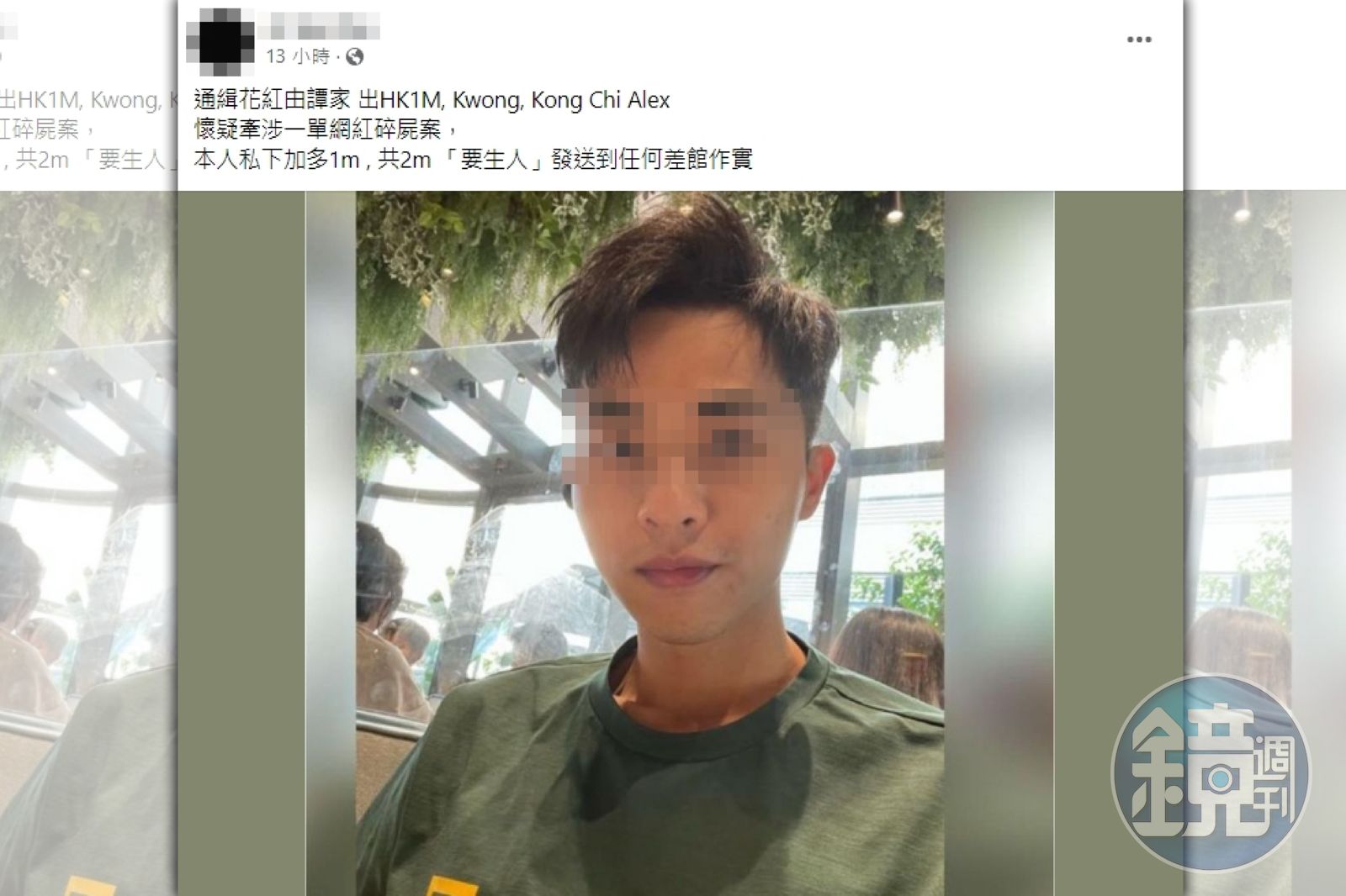 蔡天鳳遭殺害碎屍烹煮,鄺姓前夫稍早在東涌碼頭準備搭船潛逃出境,被警方成功攔截落網。(翻攝臉書)發布時間:2023.02.25 15:57 臺北時間