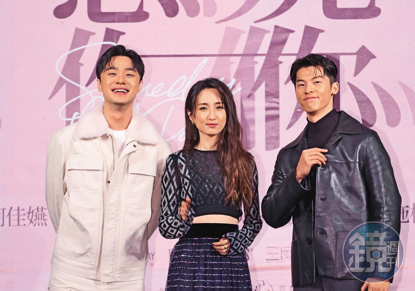 柯佳嬿(中)因《想見你》再度走紅,日前隨著兩位男主角施柏宇(左)和許光漢(右)到處宣傳。發布時間:2023.03.01 05:58 臺北時間