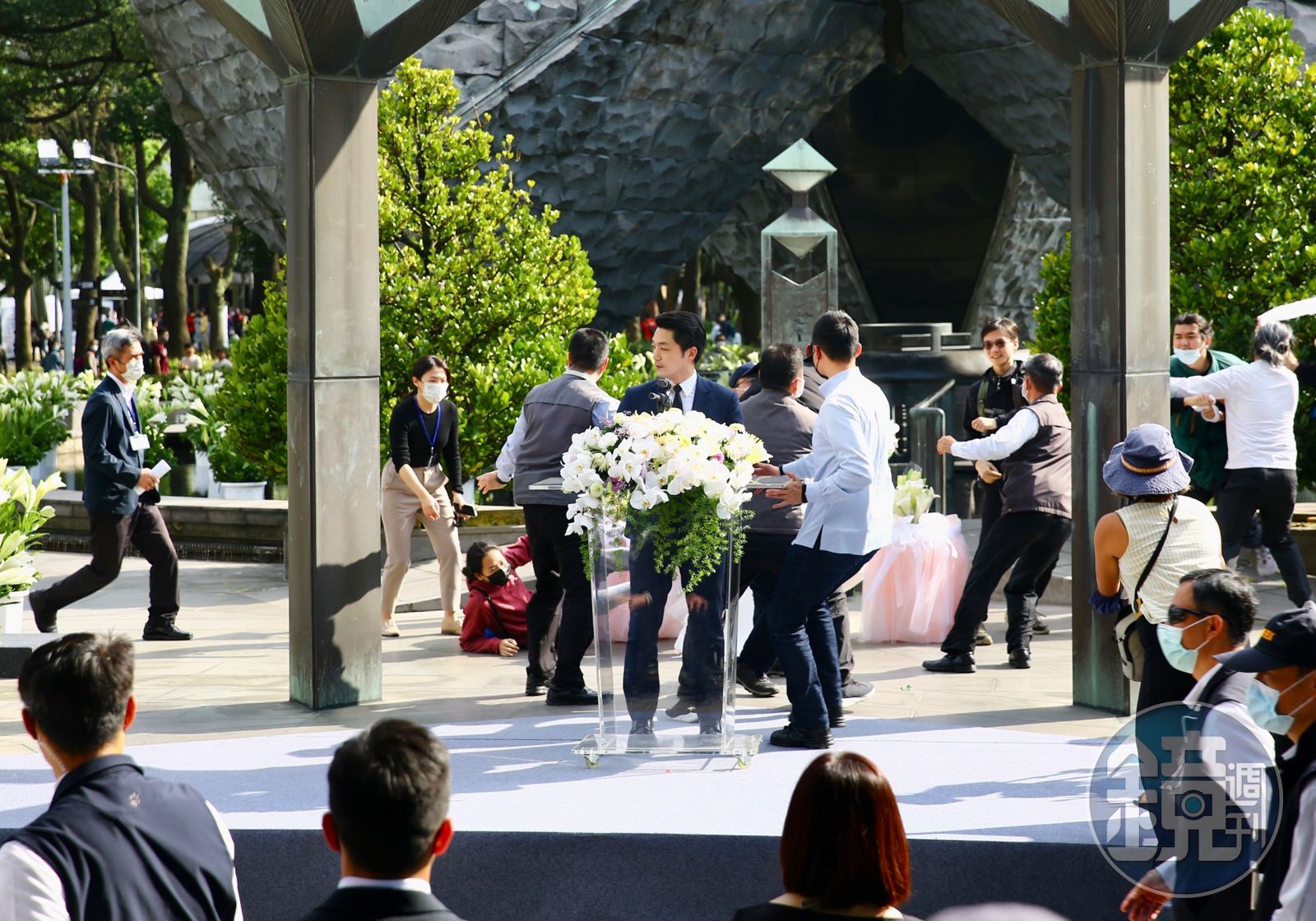 蔣萬安下午出席北市府舉行的「祈福追思祥和台灣」二二八紀念會,上台致詞時遭民眾衝上台高喊「殺人兇手,下跪道歉」而打斷,稍後仍在抗議聲浪中繼續致詞,同時也正式表態以台北市長身分,「我深深為76年前發生在台北市大稻埕天馬茶房附近的緝菸事件,進而導致全台二二八事件的歷史傷痛,致上誠摯的歉意」。
