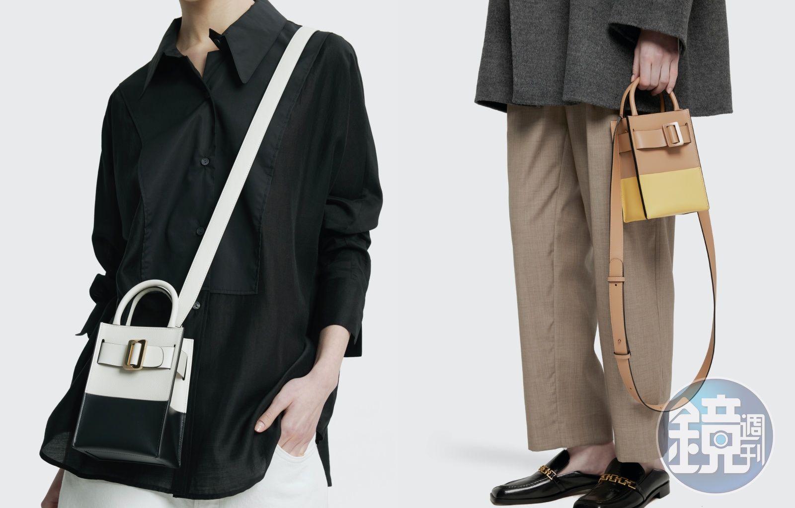 經典黑白撞色與沙灘暖陽拼色兩款撞色包為這一次的聯名系列。各NT$23,980(THE SPAACE提供)BOYY系列產品不崇尚於顯眼的Logo,以經典的方釦為設計主軸,此次聯名包款融入優雅的當代極簡精神,搭配亮眼的撞色設計成為最吸睛的亮點,包身以全小牛皮材質打造,精巧實用的尺寸能夠手提及肩背,乾淨俐落的剪裁可以說是為新一代OL提供了高級簡約的百搭單品,能搭配所有日常穿搭。