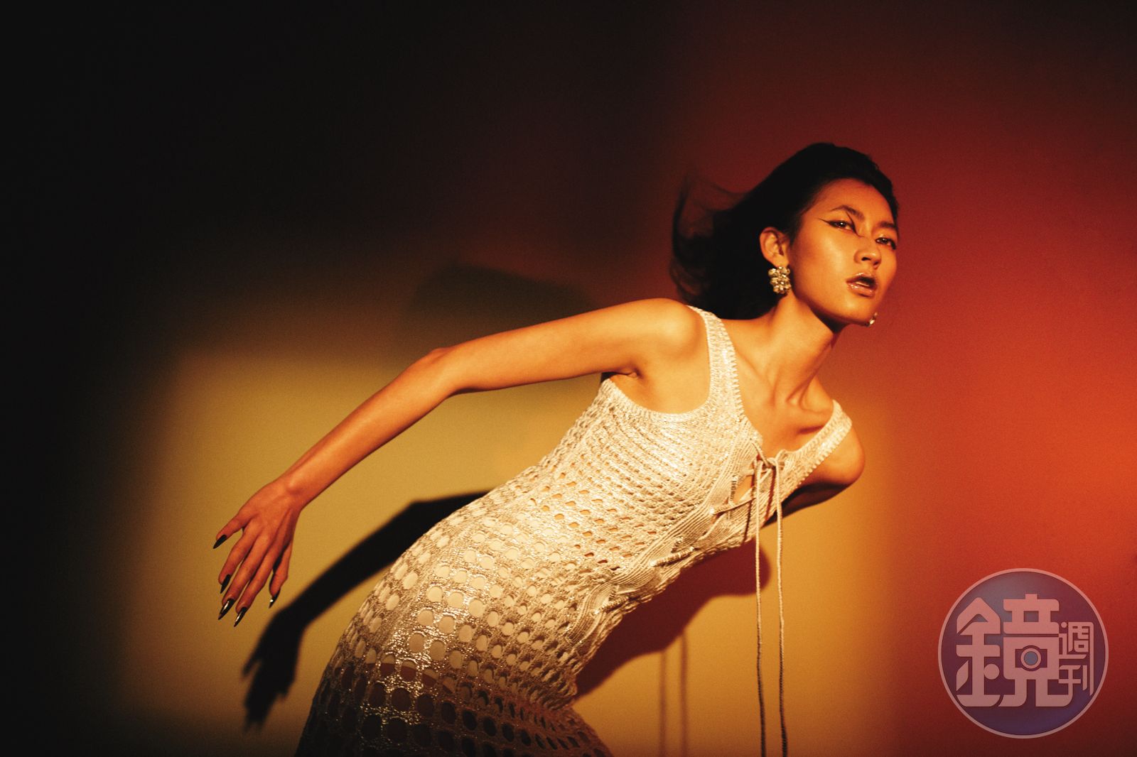 銀色針織洋裝,NT$159,100, by Chloé;銀色耳環,價格店洽,by BOTTEGA VENETA。發布時間:2023.03.10 05:58 臺北時間