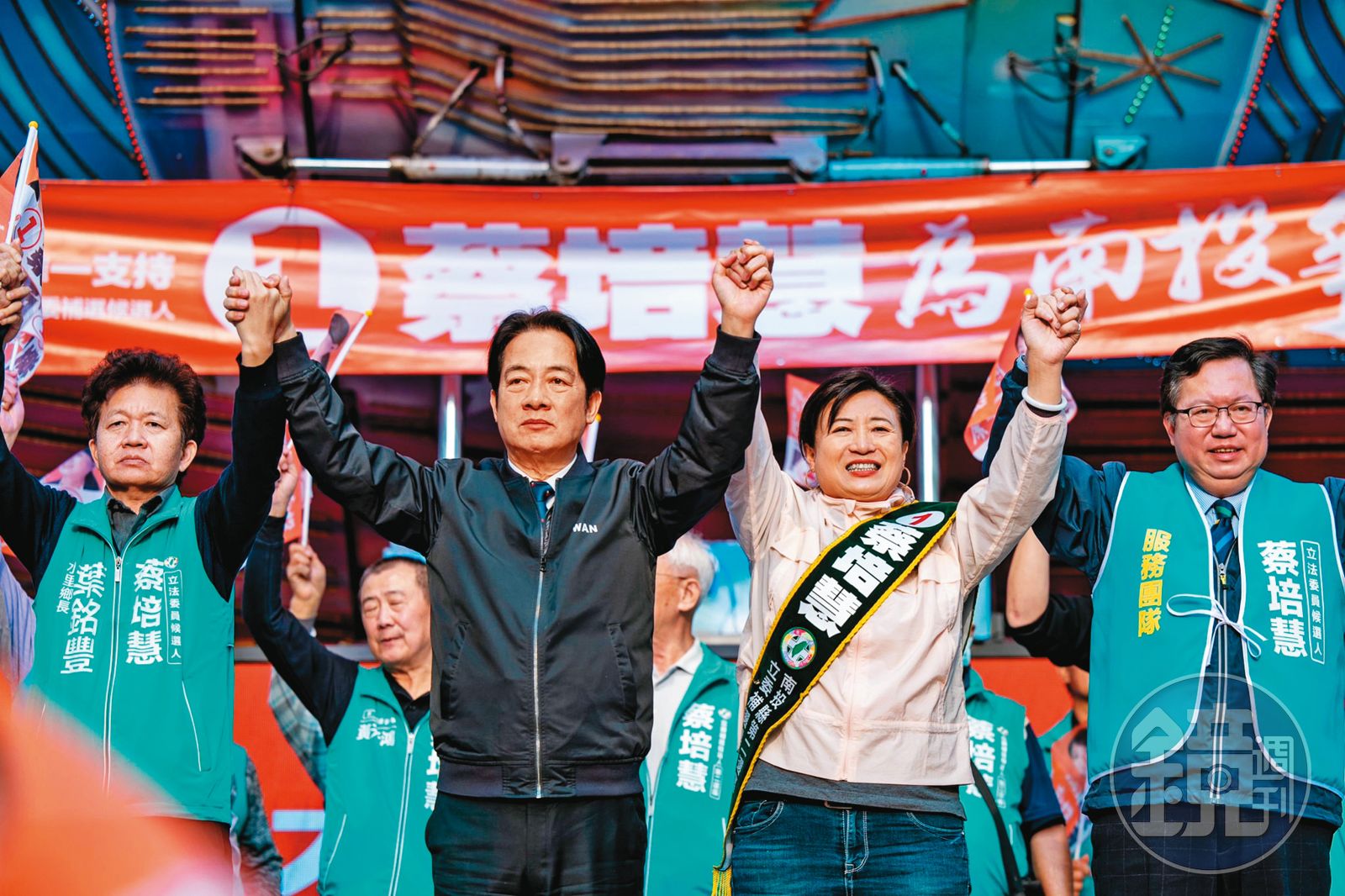 替蔡培慧輔選時,賴清德更要求幕僚訂製八仙綵致贈廟方,右方寫著「護國安民、合境平安」,左邊則有「賴清德、蔡培慧敬獻」的落款,掛在神桌前相當醒目,地方民眾看了直誇「金用心」,開票結果也印證賴、蔡的用心已被選民看見。