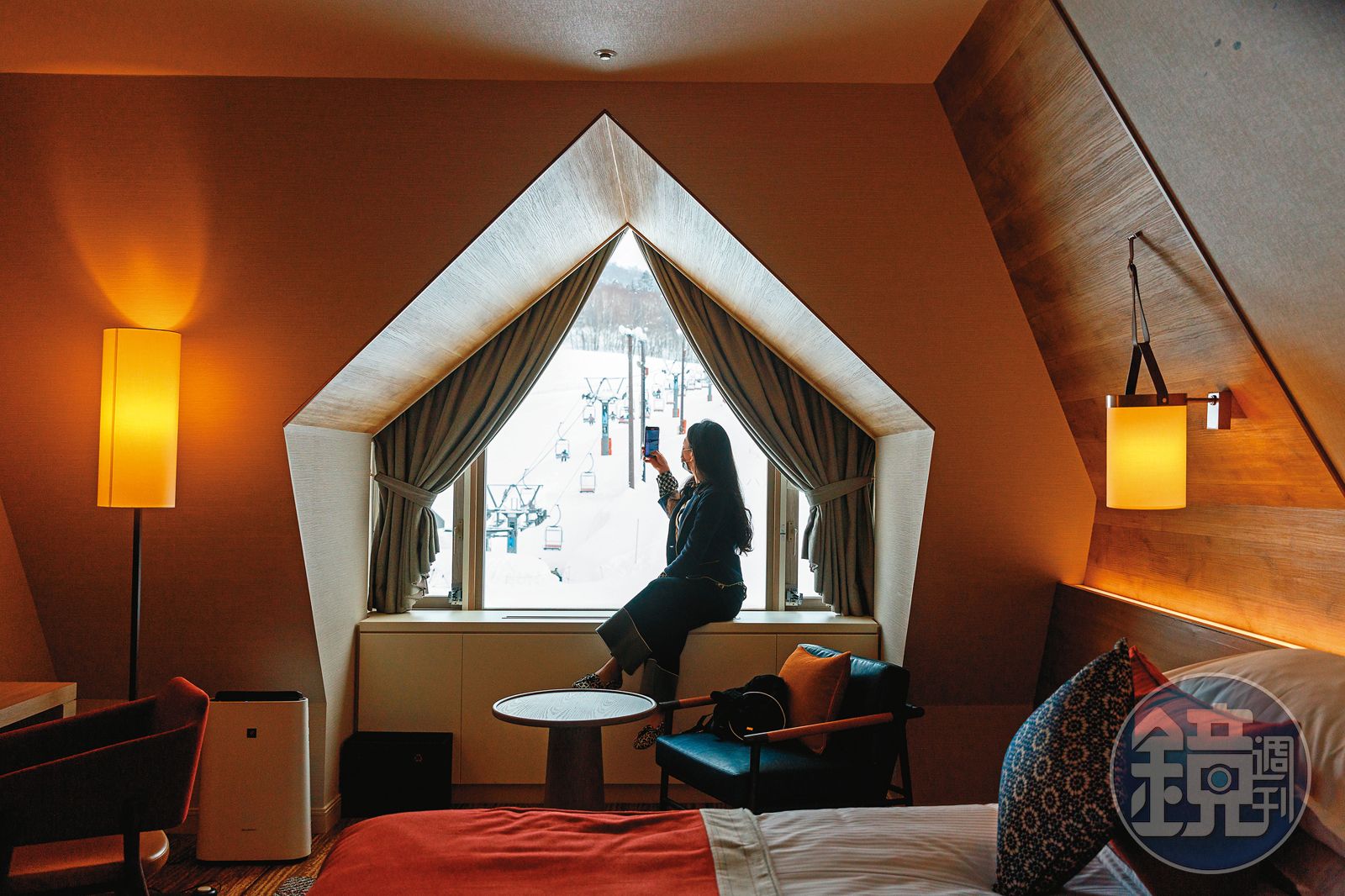 度假村共有126間客房,主要分為標準、麗緻與套房,以木頭為基調的室內空間,展現Club Med對北海道少數民族阿伊努文化及日本大和民族的喜愛與尊敬,象徵這兩種民族文化的圖騰,在大廳、餐廳、客房皆隨處可見。其中代表日本傳統藝術「書道」的設計牆面,也成為每間客房最搶眼的視覺焦點,在寢具、抱枕與沙發上,則融入色彩繽紛的蘇格蘭格紋線條,為這座既摩登又傳統的度假村,注入溫暖的氣息。
