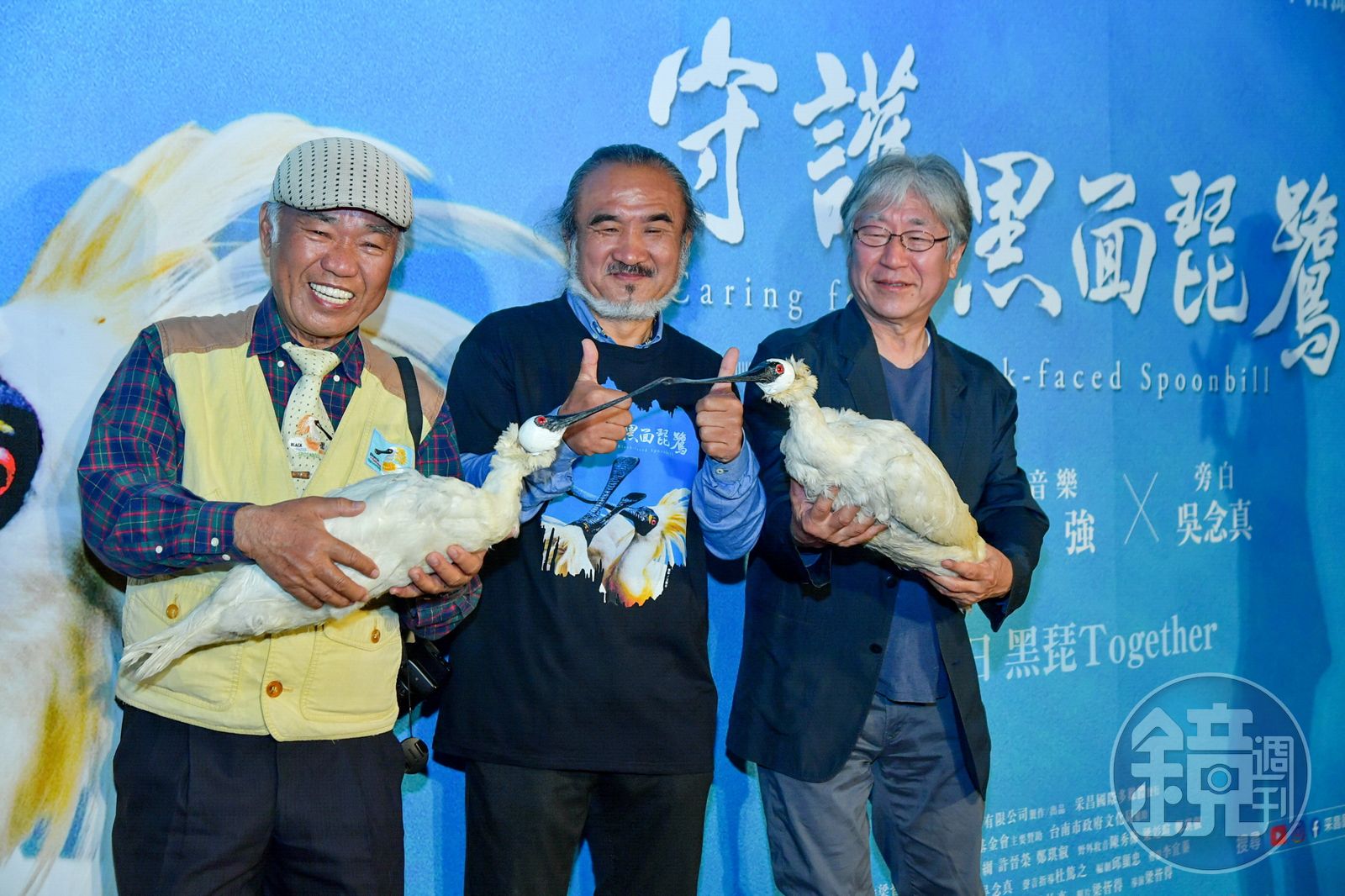 不僅設備要更新,拍黑面琵鷺也要耍點小心機。日前紀錄片的首映會上,該片主要人物王徵吉、日本專家松本悟都出席。梁皆得帶了兩隻由國內知名動物醫師祁偉廉父子精心製作的仿真模型假鳥。梁皆得透露,他們在模型上裝設小型攝影機,藉此吸引黑面琵鷺接近,因此捕捉到牠們洗澡等珍貴畫面,觀眾才得以近距離欣賞到黑面琵鷺的各種「英姿」,一睹國際級明星嬌客的樣貌與行動。