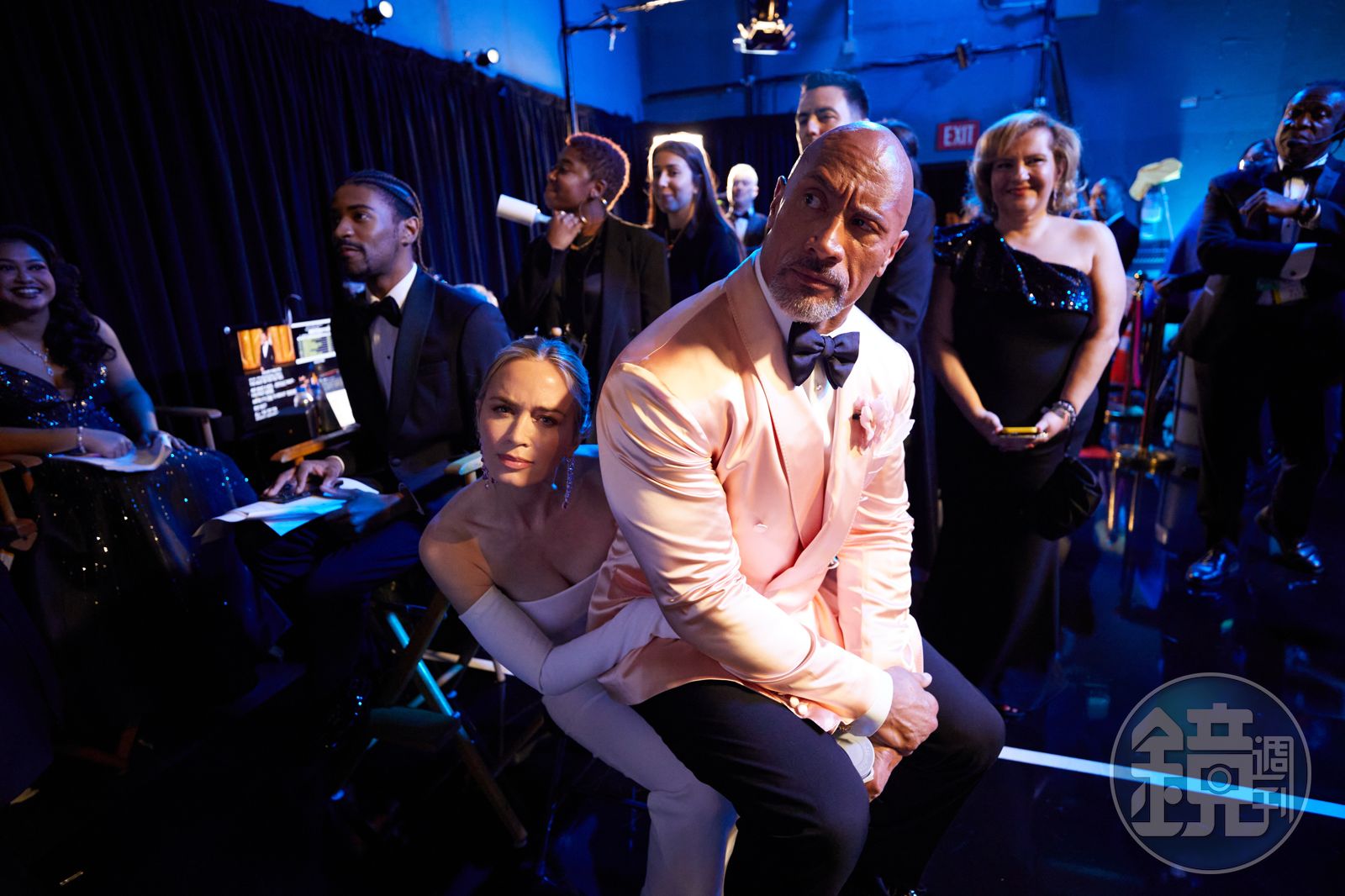 【95奧斯卡】奧斯卡後台大明星們忙什麼? 巨石強森一屁股坐艾蜜莉布朗腿上