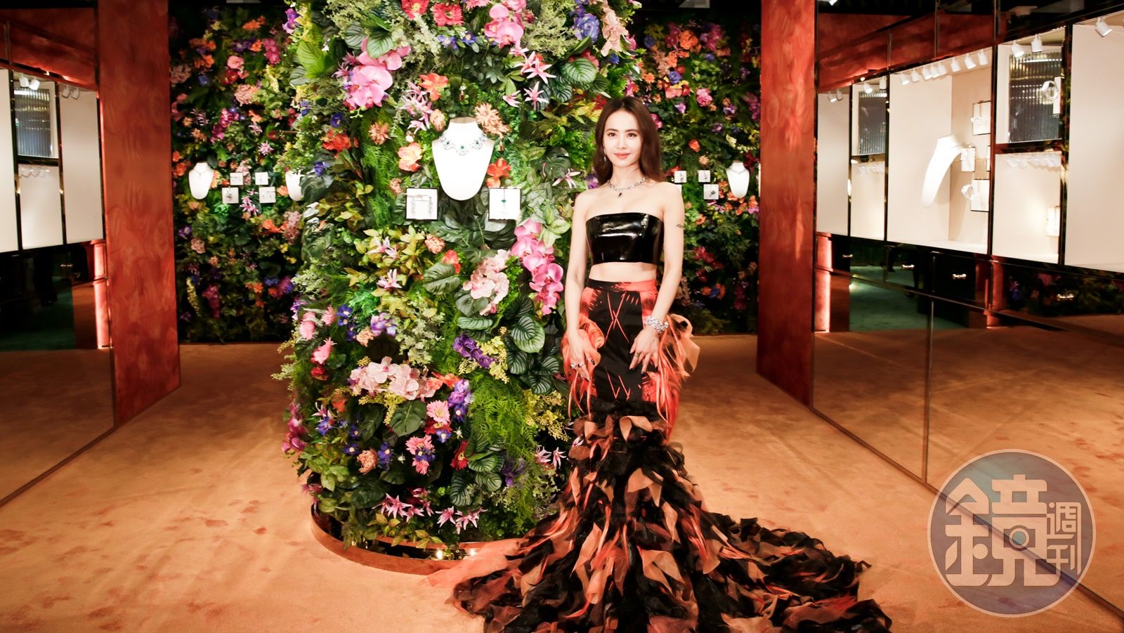 她透露配戴靈感來自「維納斯的髮絲」Emerald Venus維納斯祖母綠頂級鑽石與祖母綠項鍊時,第一時間的感受是「很冰」:「因為它全都是鑽石」,問她是否很重?她搖頭「沒有我的表演服重」。是否覺得自己與維納斯有相似之處?她想了一會後說:「我沒看過維納斯本人,只覺得她讓人很舒服的感覺,沒有攻擊性。」語畢她反問媒體,「我應該也有給人很舒服的感覺吧?」