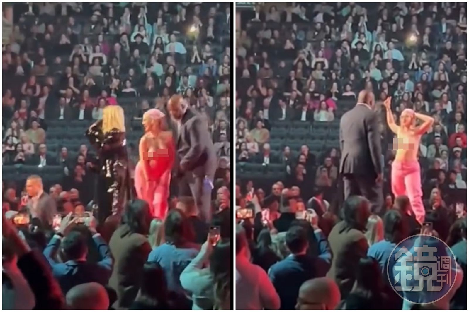 艾薇兒15日出席加拿大第52屆朱諾獎(Juno Awards)時,一名裸女衝上台鬧事。(翻攝自微博)發布時間:2023.03.15 17:03 臺北時間